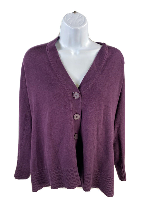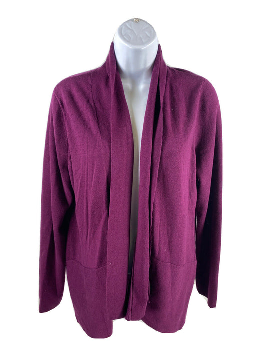Chico’s Women’s Purple Fringe Trim Long Sleeve Open Cardigan Sweater - 2/L