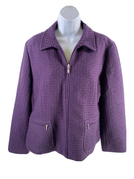 Casual Corner Women’s Purple Wool Blend Full Zip Vintage Basic Jacket - 14