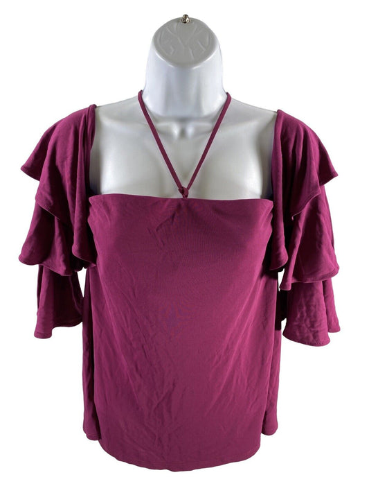 Ann Taylor Women’s Purple Long Ruffle Sleeve Blouse - M