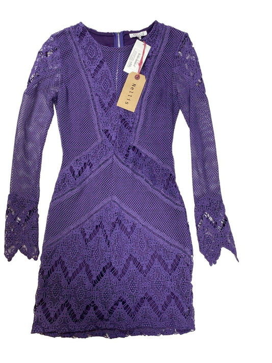 White House Black Market Women’s Black/Blue Long Mesh Sleeve Sweater Dress - S