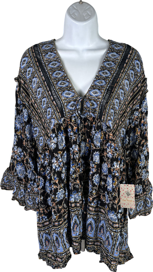Free People Women’s Black Long Sleeve Button Up Denim Jean Jacket - M