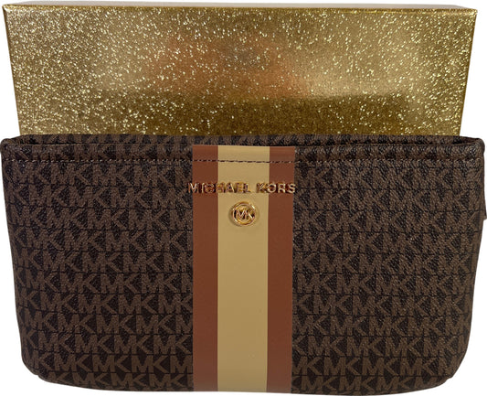 Michael Kors Women’s Beige/Brown Jet Set Signature Zip Close Crossbody Purse
