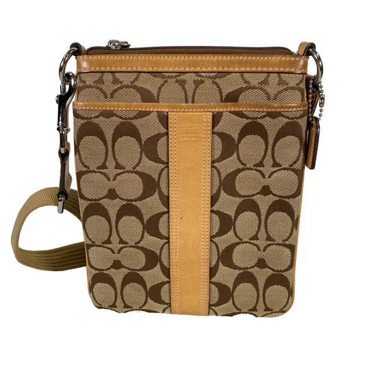 Coach Women’s Beige Signature Canvas Zip Close Crossbody Hand Bag Purse