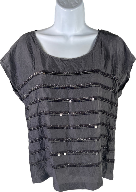 J.Crew Women’s Purple/Gray Sequin Cap Sleeve T-Shirt - 4