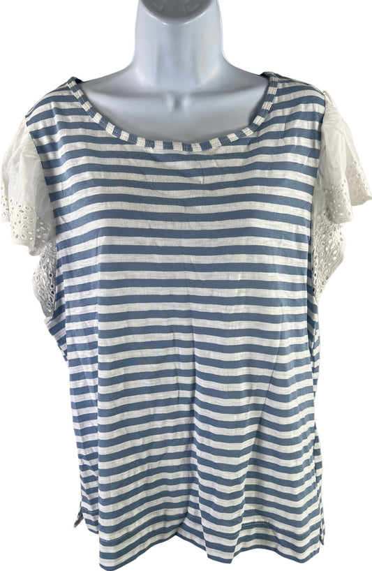 Jane & Delancey Women’s Blue Striped Cap Sleeve Shirt - L