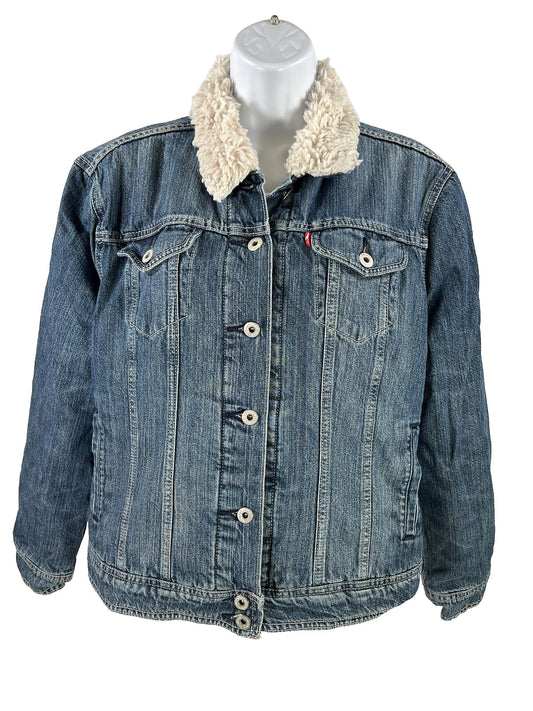 Levi’s Women’s Ivory/Blue Sherpa Quilted Denim Jean Jacket - XS