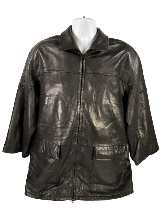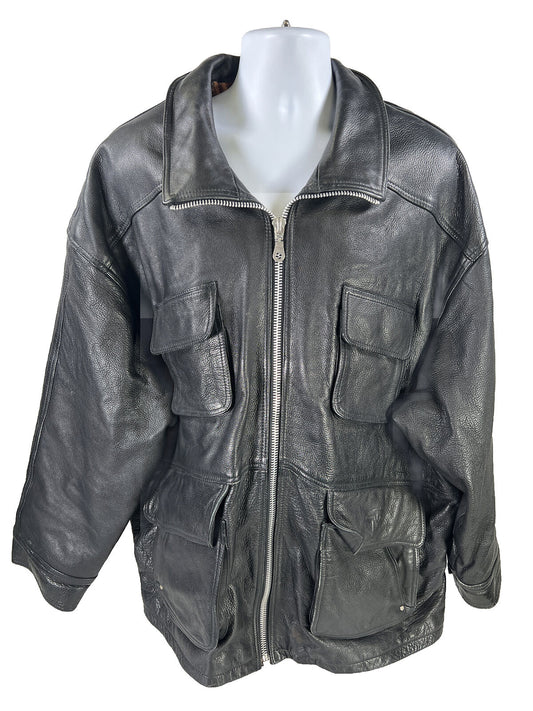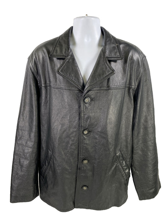 Eddie Bauer Men’s Black Leather Goose Down Full Zip Coat - XL
