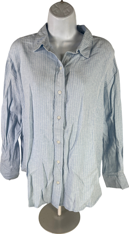 NEW Rafaella Women’s Blue/White Striped Long Sleeve Button Up Shirt - M