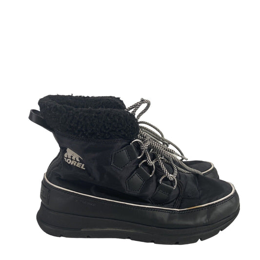 Sorel Women’s Black Leather Ona Ave Waterproof Platform Low Sneakers - 9