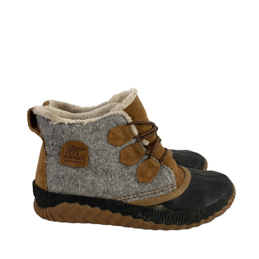 Sorel Youth Big Kids Gray Out N About Mini Puffy Water Resistant Short Boots - 7