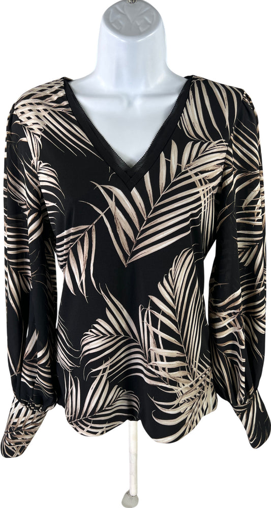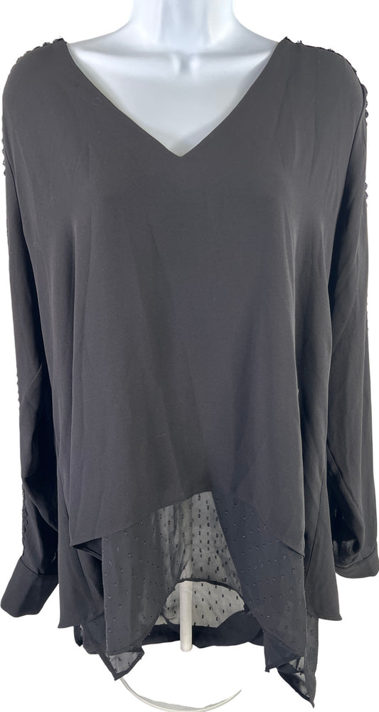 White House Black Market Womens Black Metallic Cold Shoulder 3/4 Sleeve Shirt -L