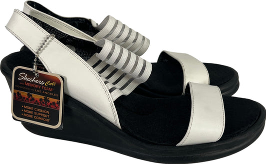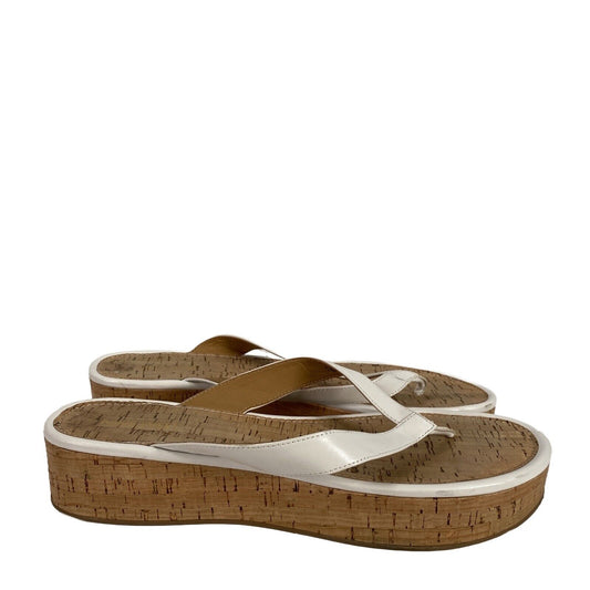 BOC Women’s White Leather Floral Open Toe Low Wedge Sandals - 40.5/US 9