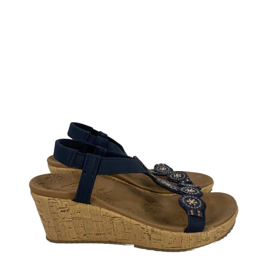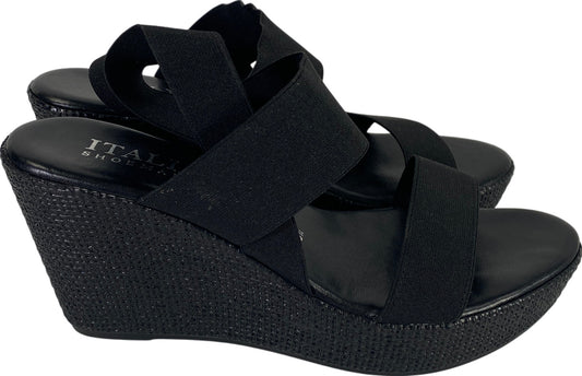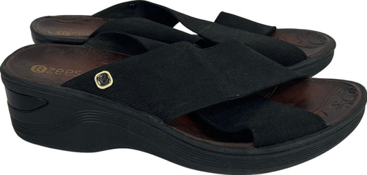 Bzees Women’s Black Rhinestone Dazzle Me Wedge Flip Flops - 8