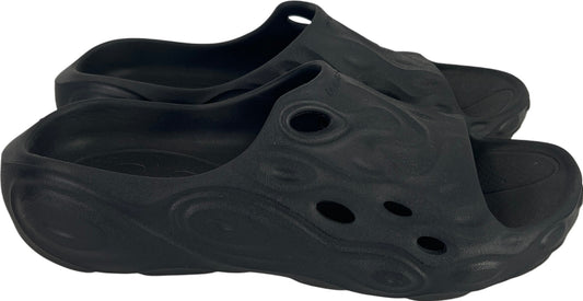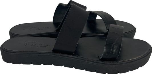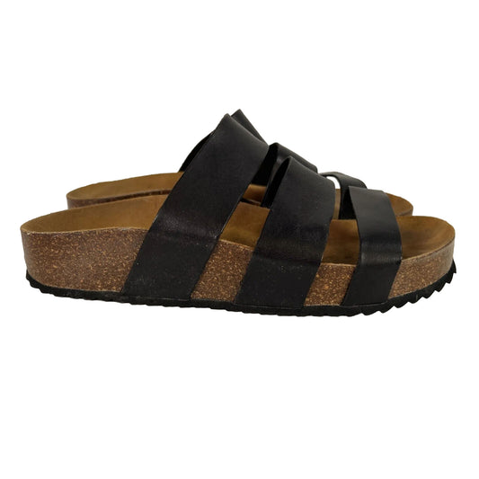 La Plume Women’s Black Leather Double Strap Slide Sandals - 41/US 10