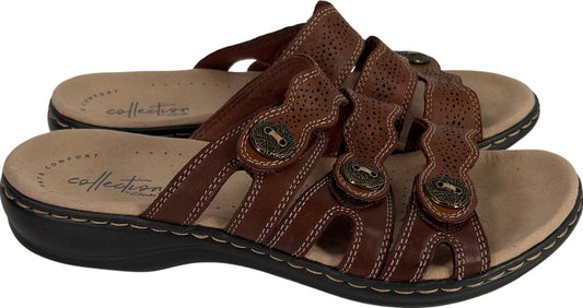 Talbots Women’s Brown Leather Slip On Wedge Sandals - 9.5