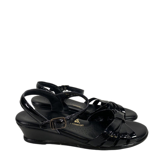 CHANEL Women’s Black Patent Leather Open Toe Wedge Sandals - 36/US 5.5