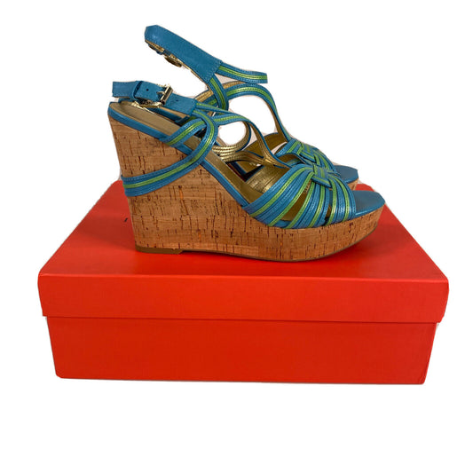 Jack Rogers Women’s Blue Leather Ankle Wrap Espadrille Wedge Sandals - 6