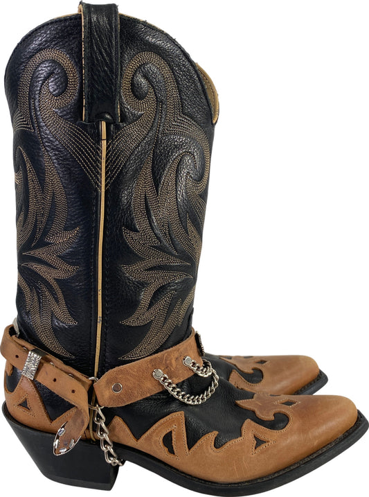 Janet and Janet Women’s Brown Leather Heeled Fashion Western Boots - 38/US 7