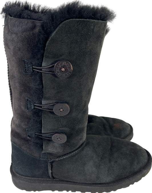 UGG Women’s Black Suede Simmons Shearling Lined Short Mid Calf Boots - 8