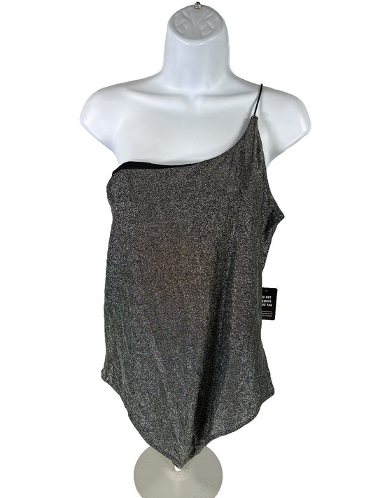 NEW Express Women’s Black/Silver Metallic One Shoulder Bodysuit - XL