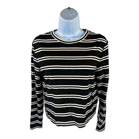 Halogen Women’s Black/White Striped Long Sleeve Cropped T-Shirt - S
