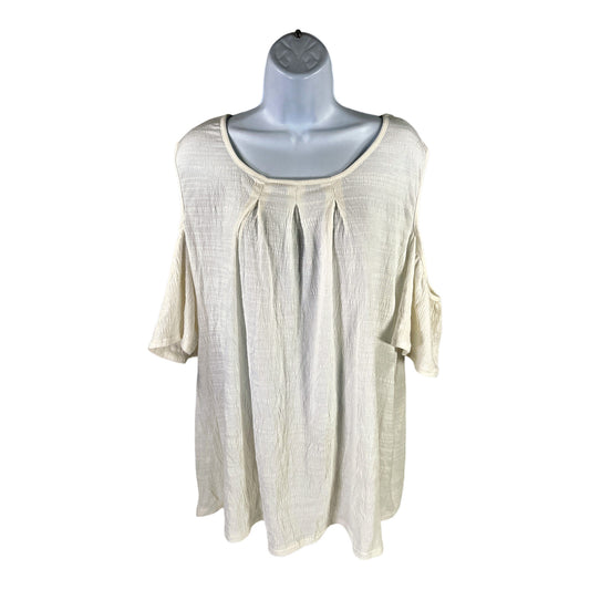 Max Studio Women’s Oat/Black Short Sleeve Ribbed Shirt - L