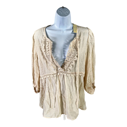 NEW Max Studio Women’s Brown Khaki Short Sleeve Button Up Shirt - XS