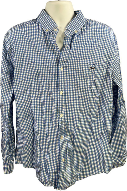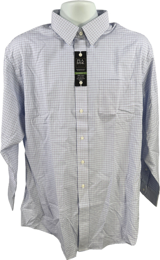 Van Heusen Men’s Blue Plaid Stain Shield Button Up Dress Shirt - 20/ 35-36