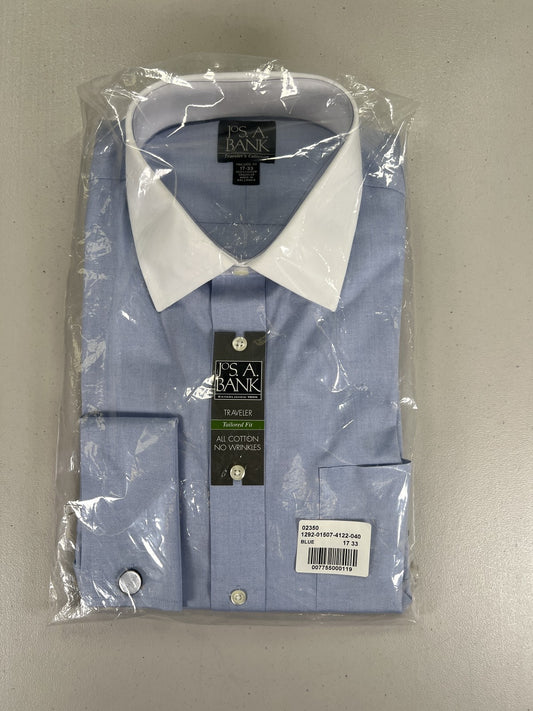 Thomas Pink Men’s Blue/Red Striped Slim Fit Button Up Dress Shirt - 17.5