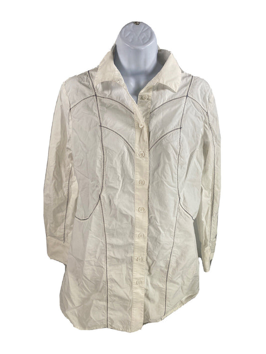 Soft Surroundings Women’s White Pleated Button Up Blouse - Petite S