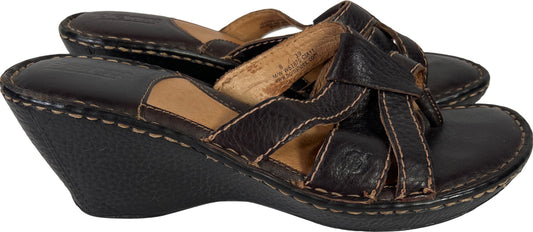 Talbots Women’s Brown Leather Slip On Wedge Sandals - 9.5
