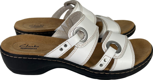BOC Women’s White Leather Floral Open Toe Low Wedge Sandals - 40.5/US 9