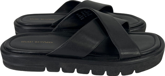La Plume Women’s Black Leather Double Strap Slide Sandals - 41/US 10