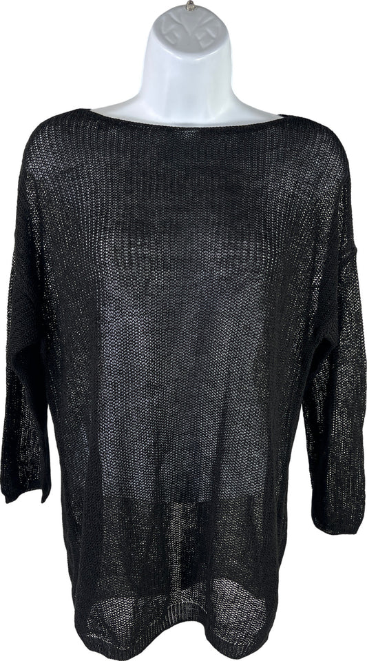 White House Black Market Women’s Black Ribbed 3/4 Sleeve V-Neck Sweater - XL