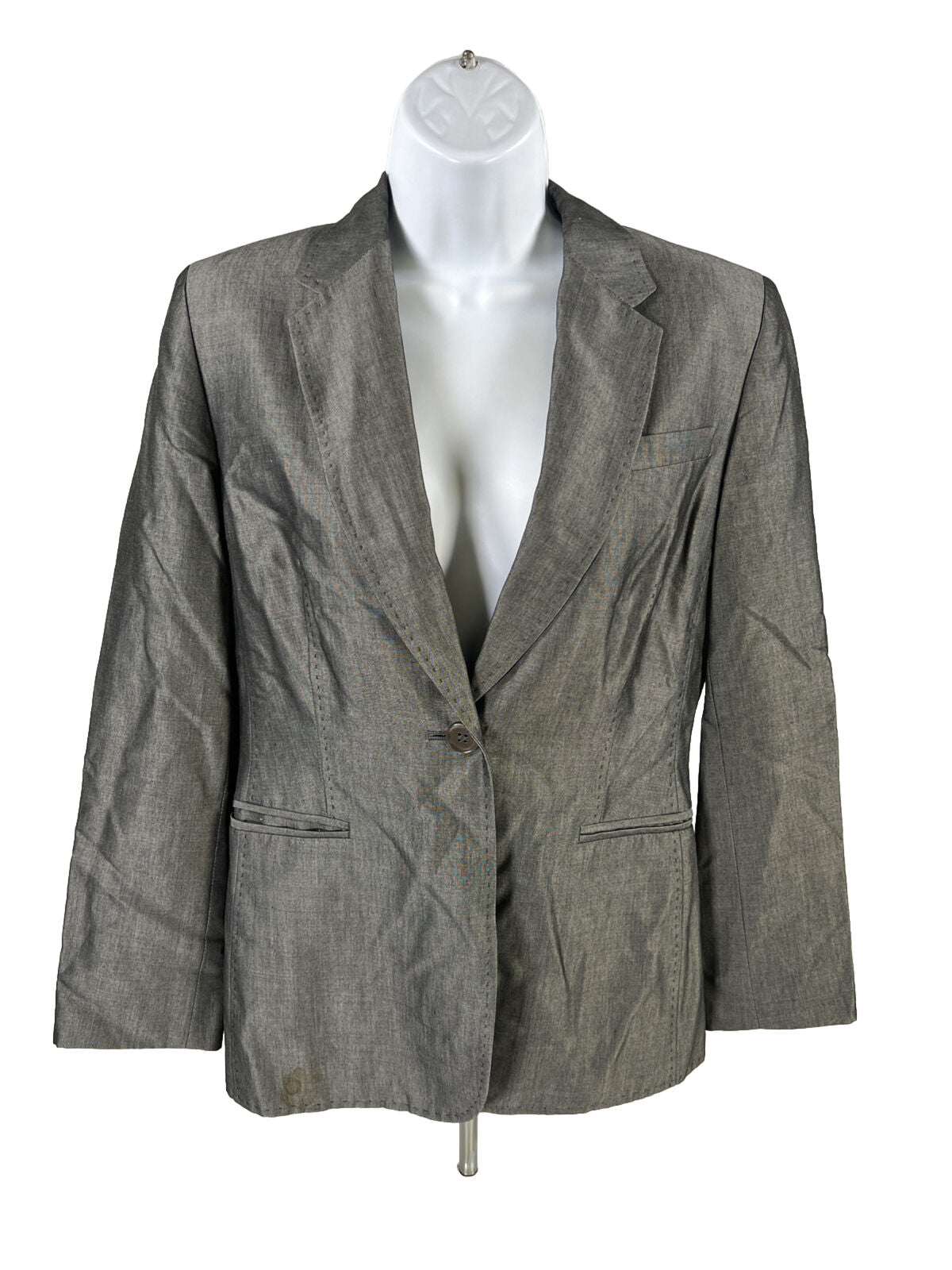Ann Taylor Chaqueta tipo blazer de mezcla de lana gris con un botón para mujer - 6 Petite
