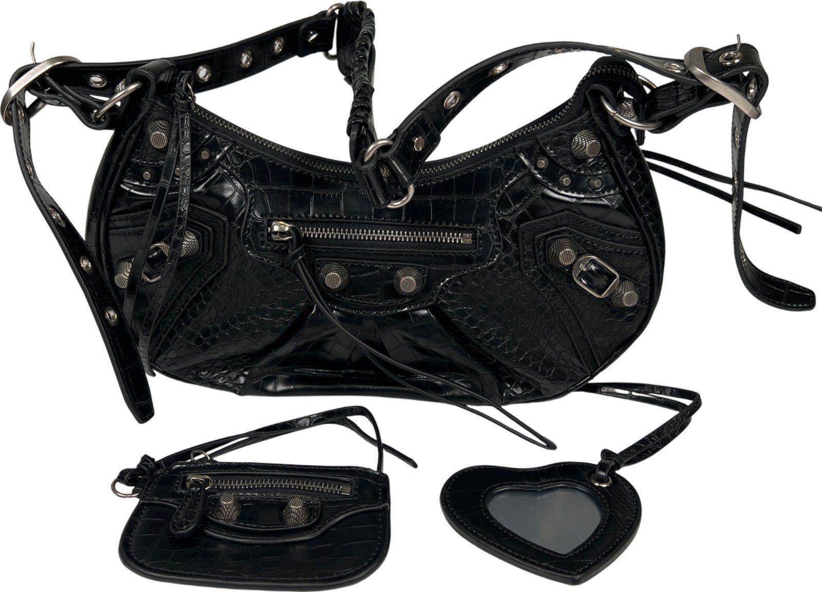 Balenciaga Black Leather Le Cagole Bag Small Satchel Bag Purse