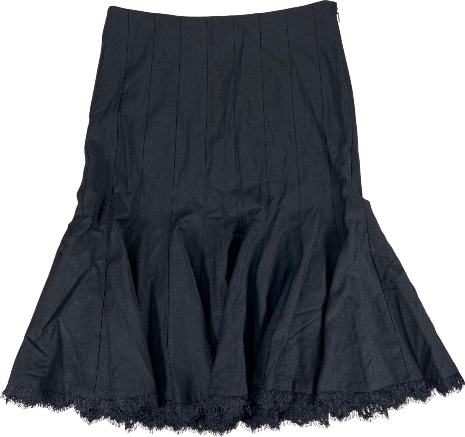 Bebe Women’s Black Lace Trim A-Line Side Zip Pleated Skirt - 8