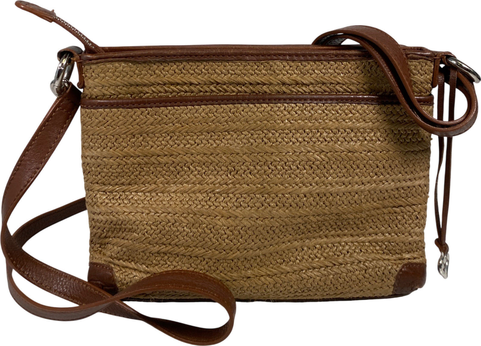 Brighton Women’s Brown Brooklyn Straw Multipocket Organizer Crossbody Purse
