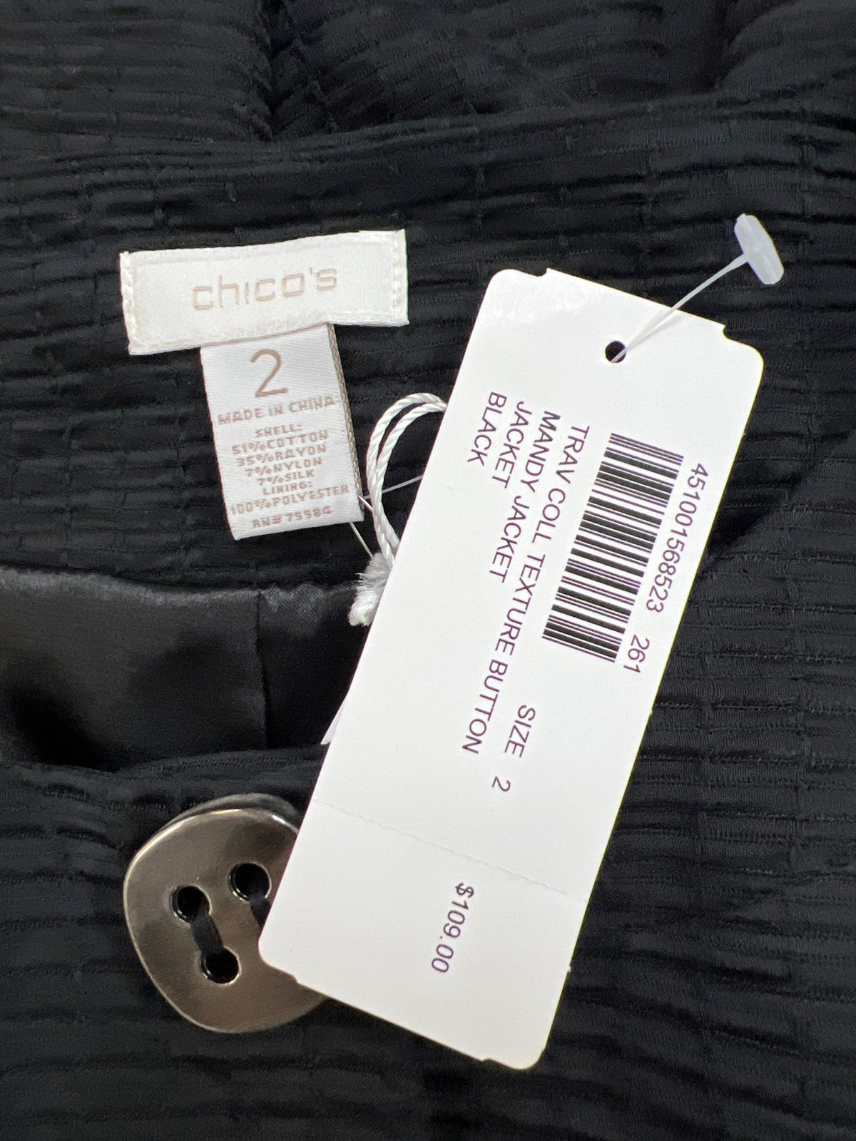 Chico’s Women’s Black Texture Travel Collection Mandy Jacket - 2/US L