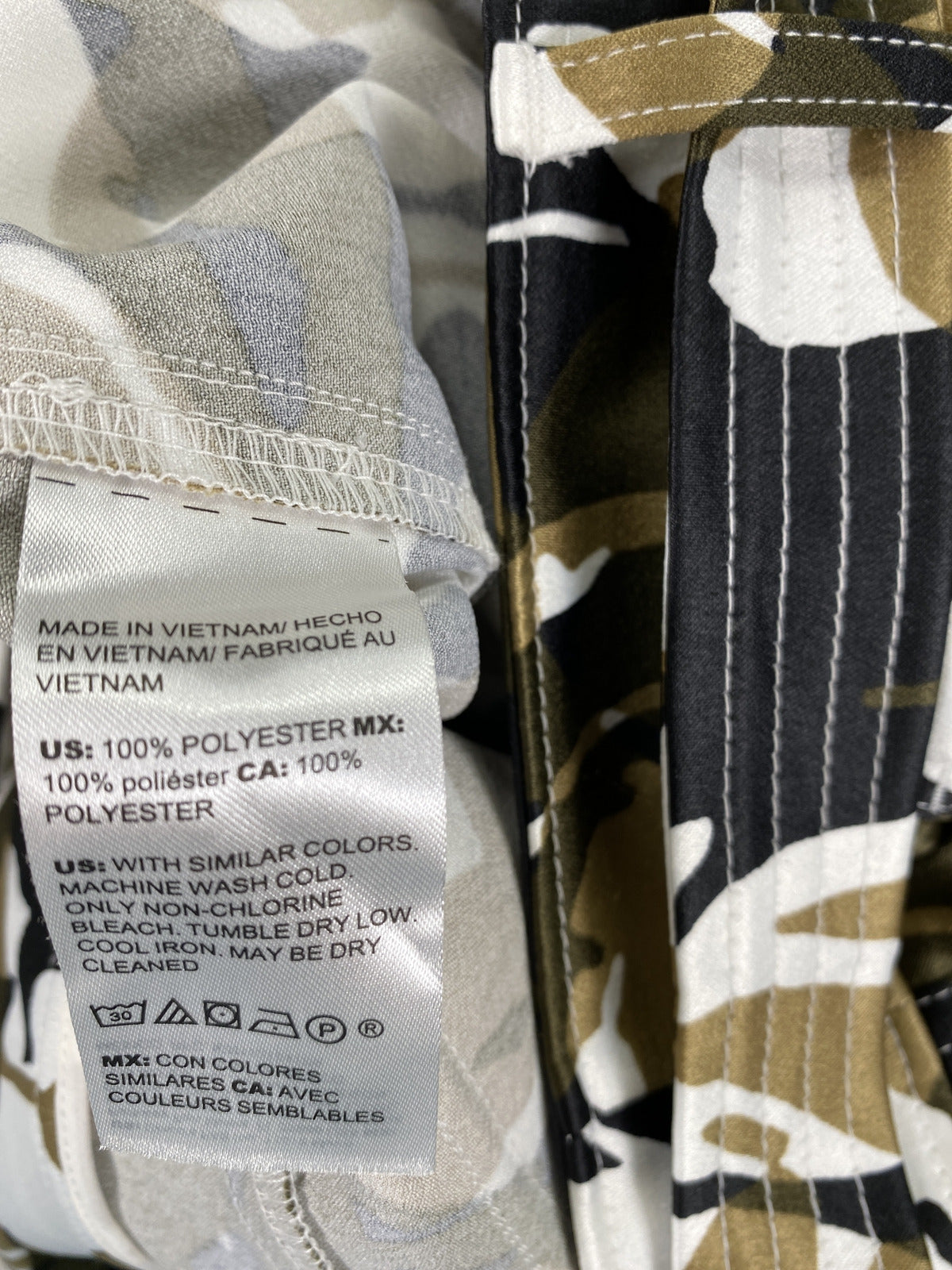 Elevate your casual wardrobe with Chico’s Women's Brown/Green Camo/Floral Satin Cargo Ankle Pants. Ideal for any season, these stylish pants feature a unique camo and floral pattern, comfortable fit, and versatile design. Perfect for everyday wear, they blend functionality with fashion seamlessly.
