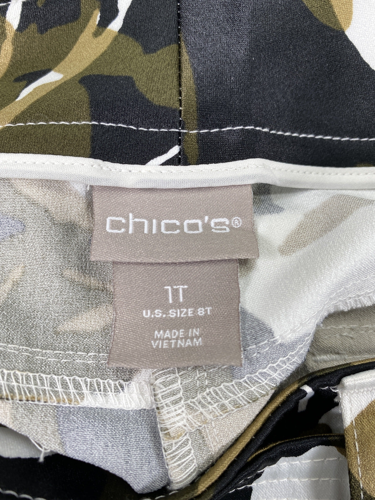 Chico’s Womens Brown/Green Camo/Floral Satin Cargo Ankle Pants - US 8Tall