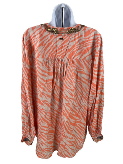Chico's Women's Pink/Coral Beaded Trim Pullover Top - 1/US 8/10