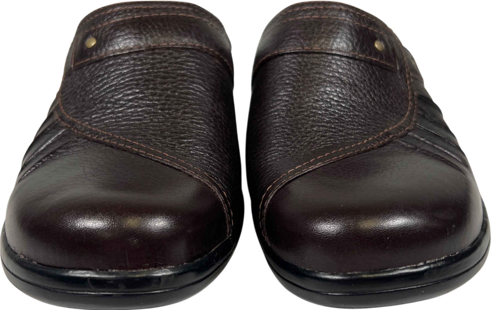 Clarks Women’s Brown Leather Slip On Clogs - 8