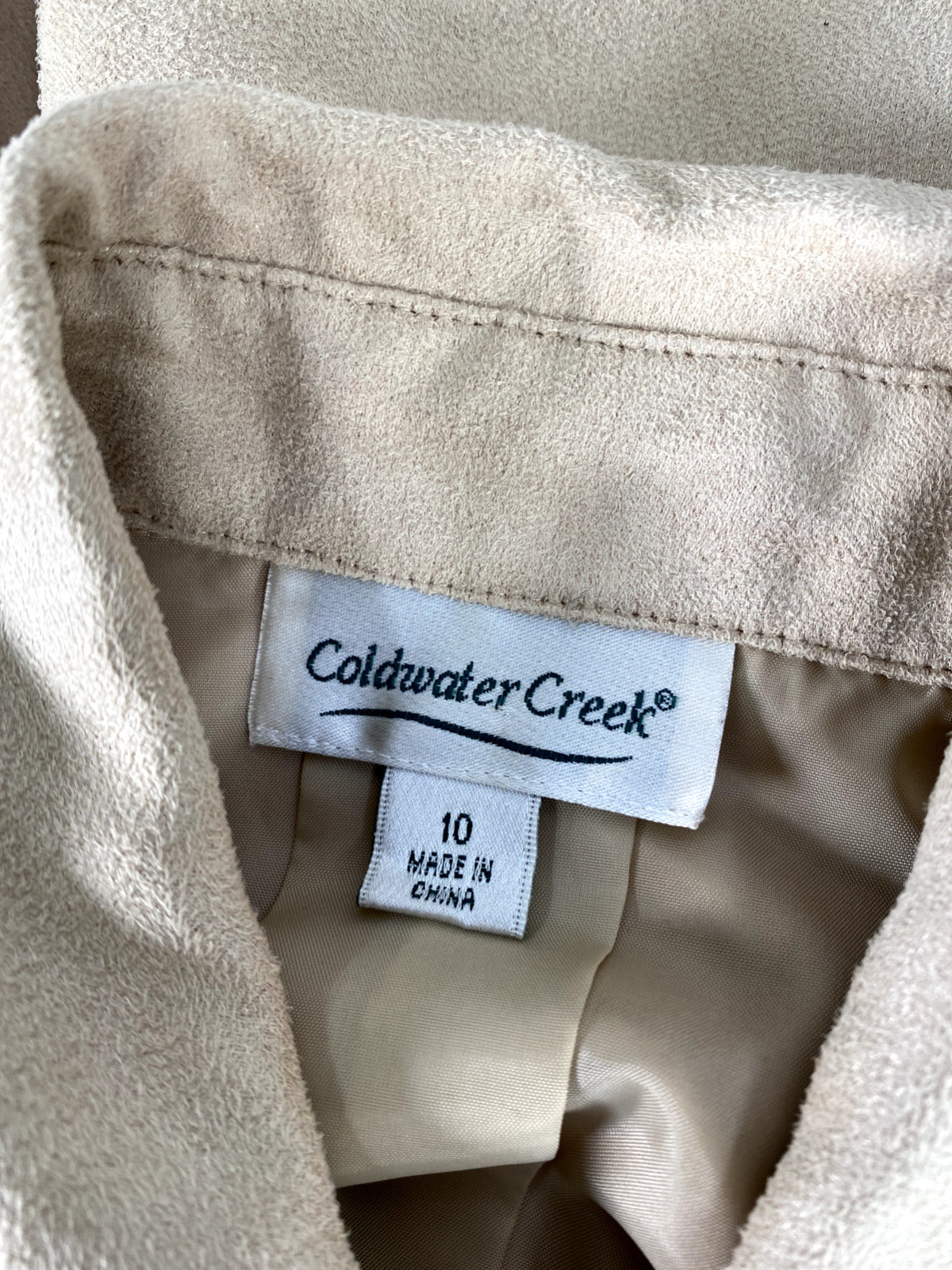 Elevate your wardrobe with this stylish Coldwater Creek women's beige lined jacket. Featuring a chic snap button closure and comfortable 3/4 sleeves, this versatile piece is perfect for any occasion. Size 10, it combines classic design with a flattering fit, making it a must-have addition to your collection.