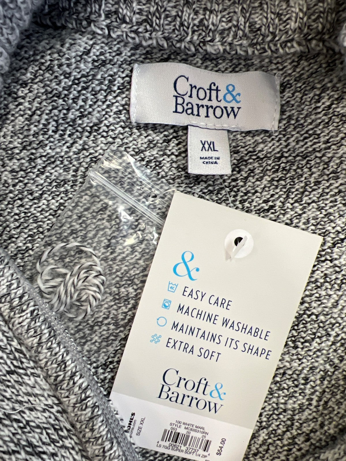 Croft and Barrow Men’s White/Black Long Sleeve 1/4 Zip Pullover Sweater - XXL