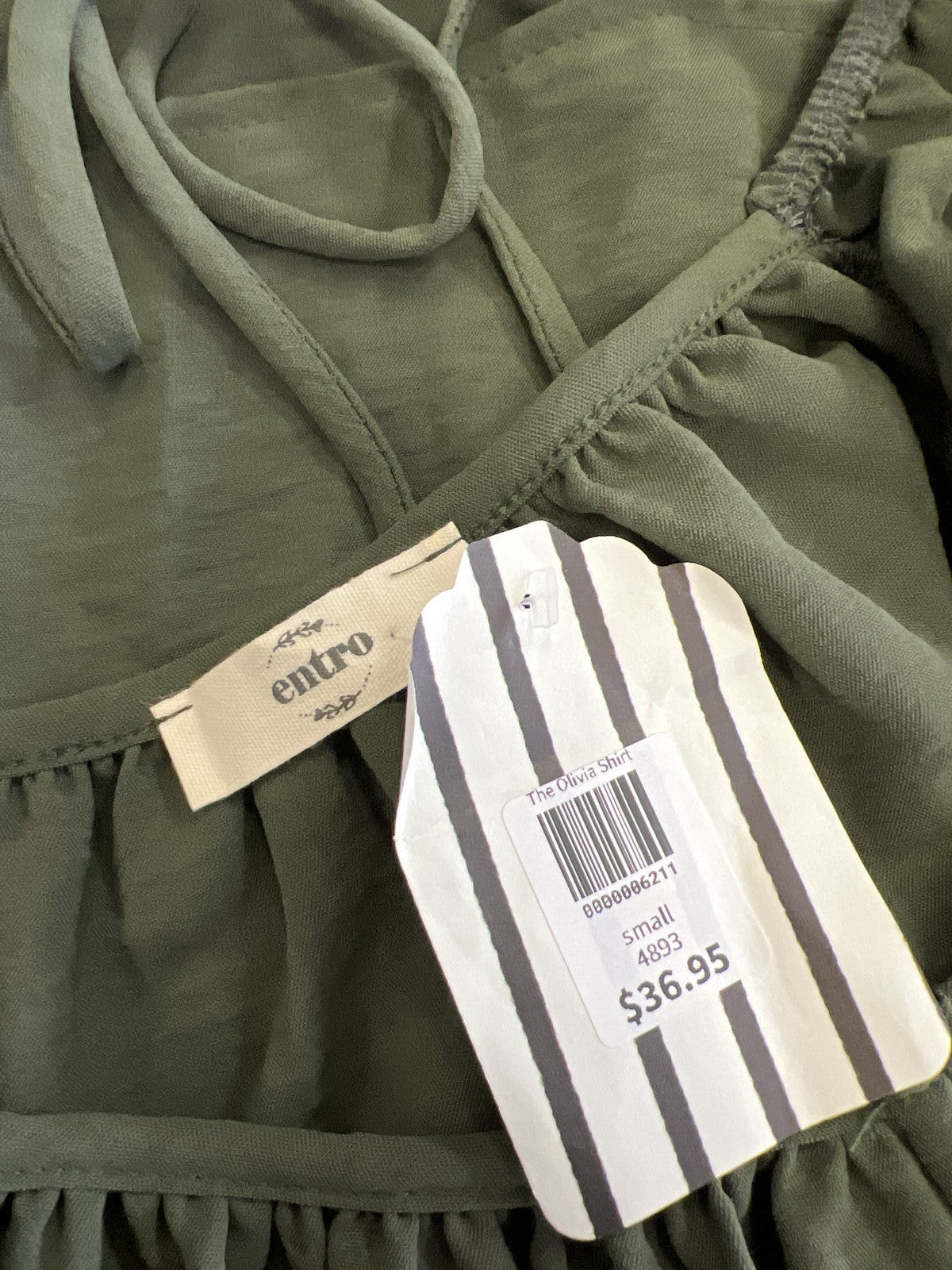 Entro Women’s Green Long Sleeve Cropped Blouse - S