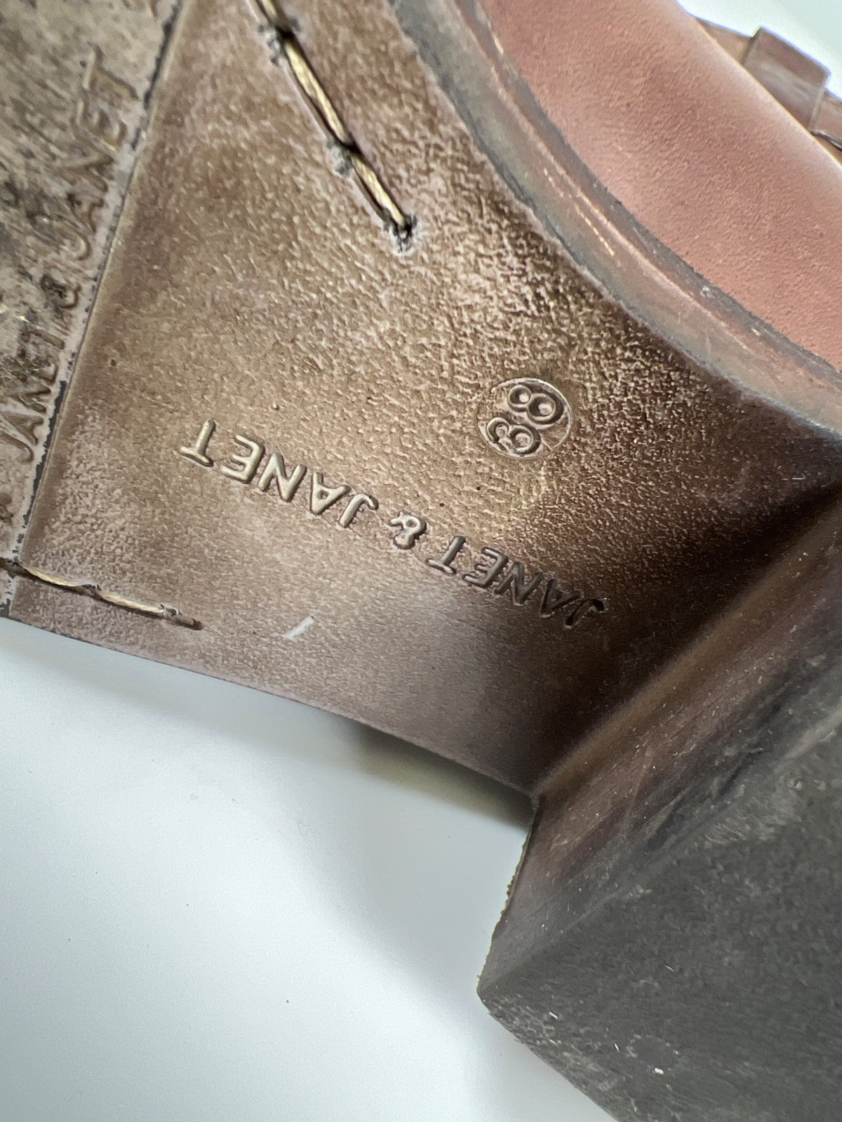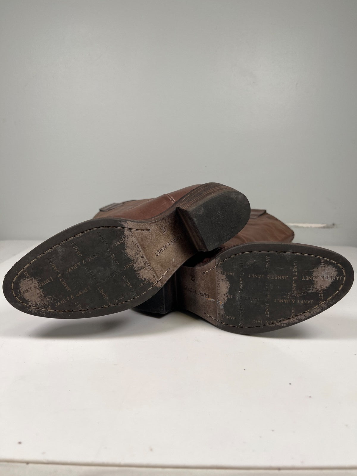Janet and Janet Women’s Brown Leather Heeled Fashion Western Boots - 38/US 7