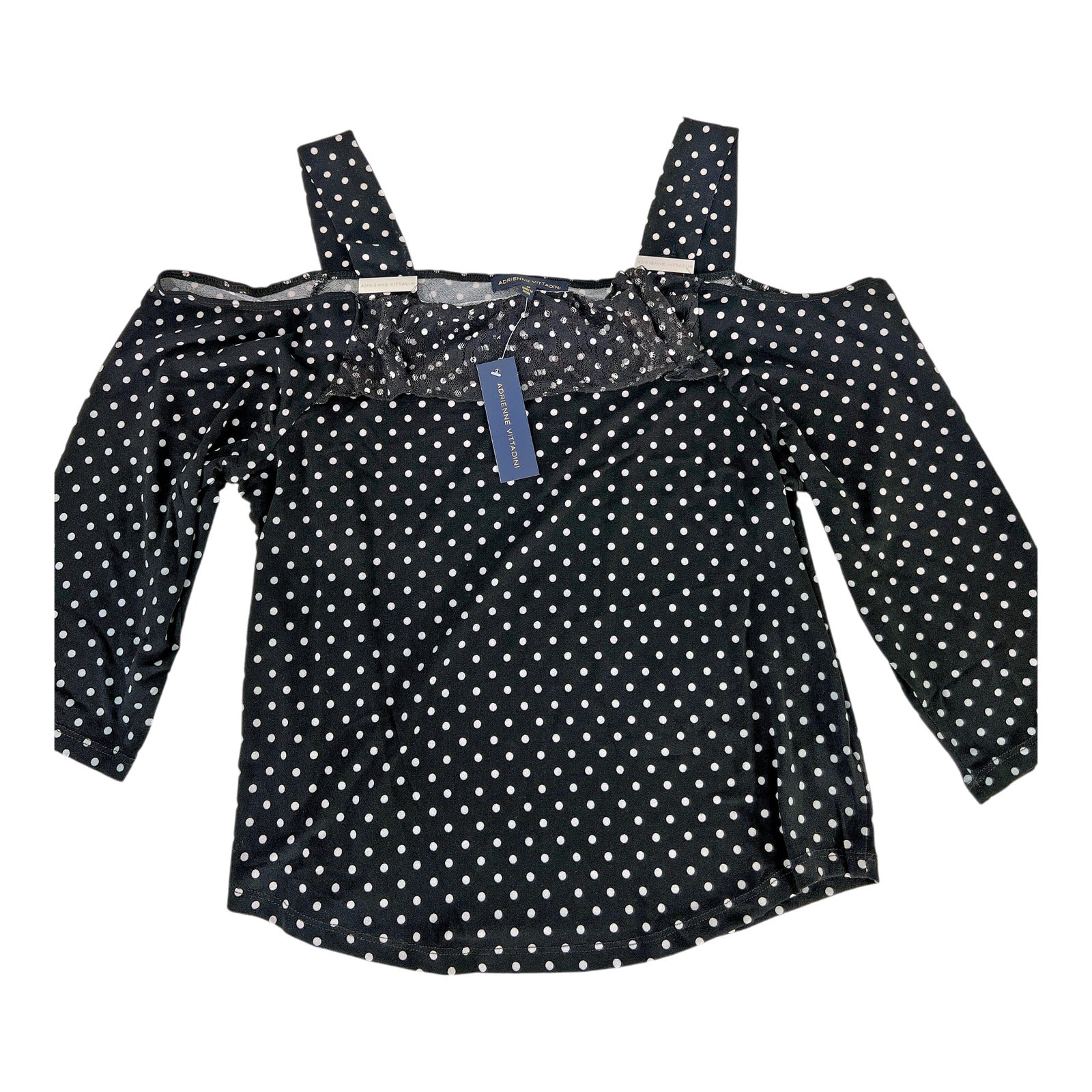 NEW Adrienne Vittadini Women’s Black/White 1/2 Cold Shoulder Sleeve Shirt - M