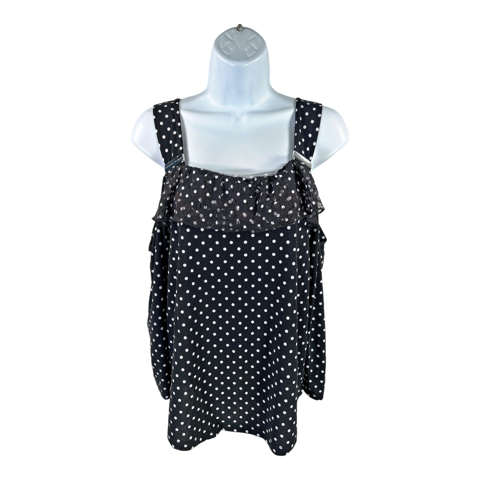 Discover the stylish Adrienne Vittadini Women's Black/White Cold Shoulder Sleeve Shirt, perfect for any casual occasion. This trendy M-sized top features a chic square neckline and a playful polka dot pattern, combining comfort and elegance effortlessly. Elevate your wardrobe with this versatile shirt today!