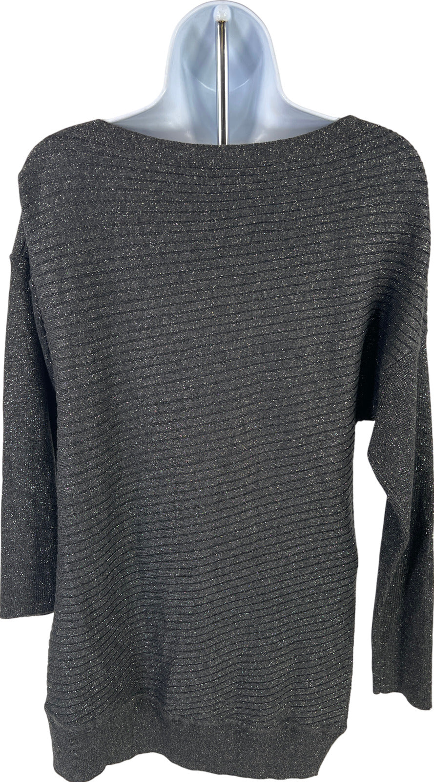 White House Black Market Women’s Dark Gray Metallic Off Shoulder Sweater - XS